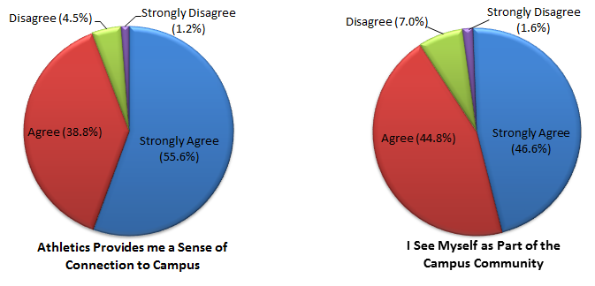 In the NCAA’s GOALS study, Division III student-athletes overwhelmingly reported that they see themselves as part of the campus community (91%) and that athletics participation has helped to provide them with a sense of connection to the campus (94%). Division III student-athletes also report a stronger connection to the campus community than their non-athlete peers.